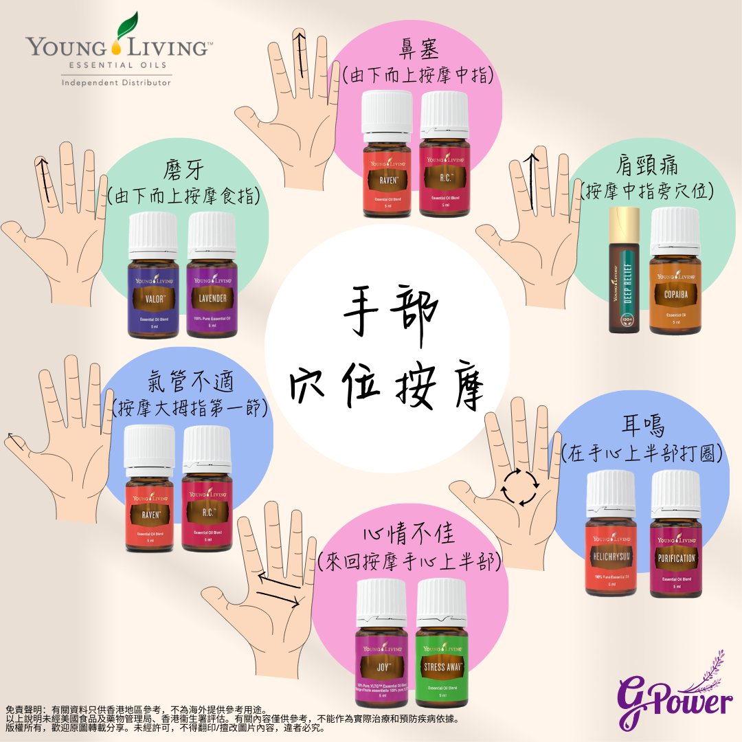 配合Young Living精油按摩手部穴位,效果會更顯著!