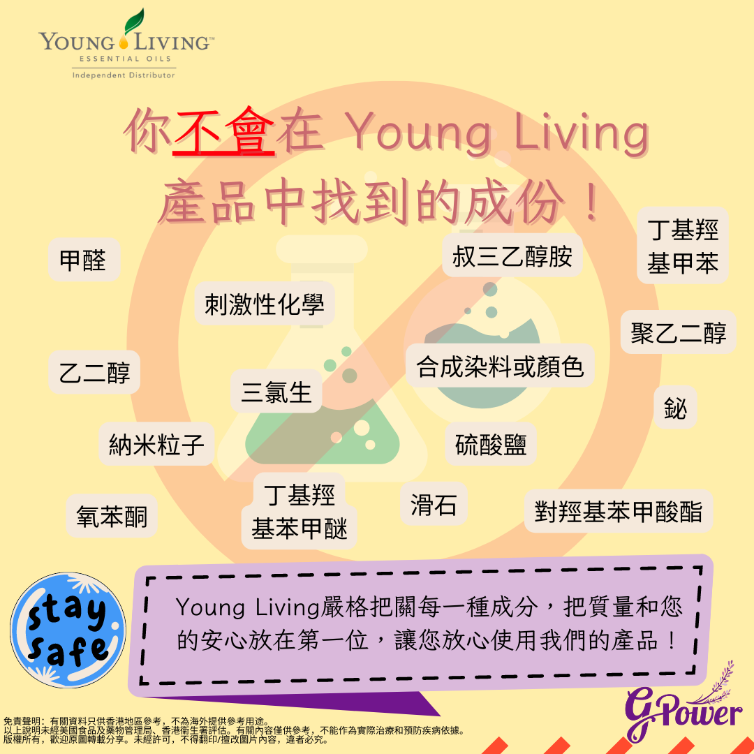 Young Living嚴格把關每一種成分,把質量和您的安心放在第一位,讓您放心使用我們的產品!