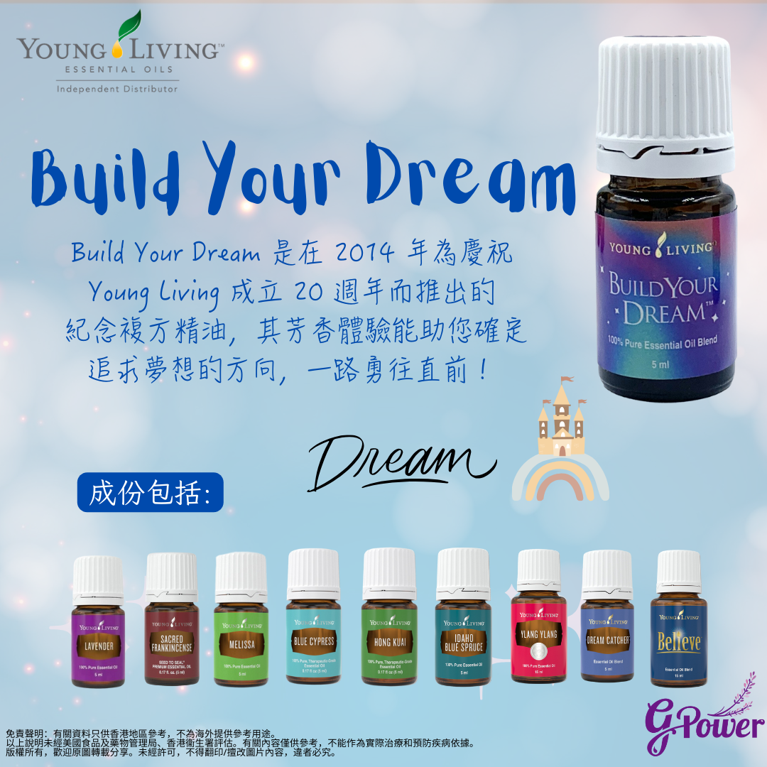 Build Your Dream 是在 2014 年為慶祝 Young Living 成立 20 週年而推出的紀念複方精油,其芳香體驗能助您確定追求夢想的方向,一路勇往直前!
