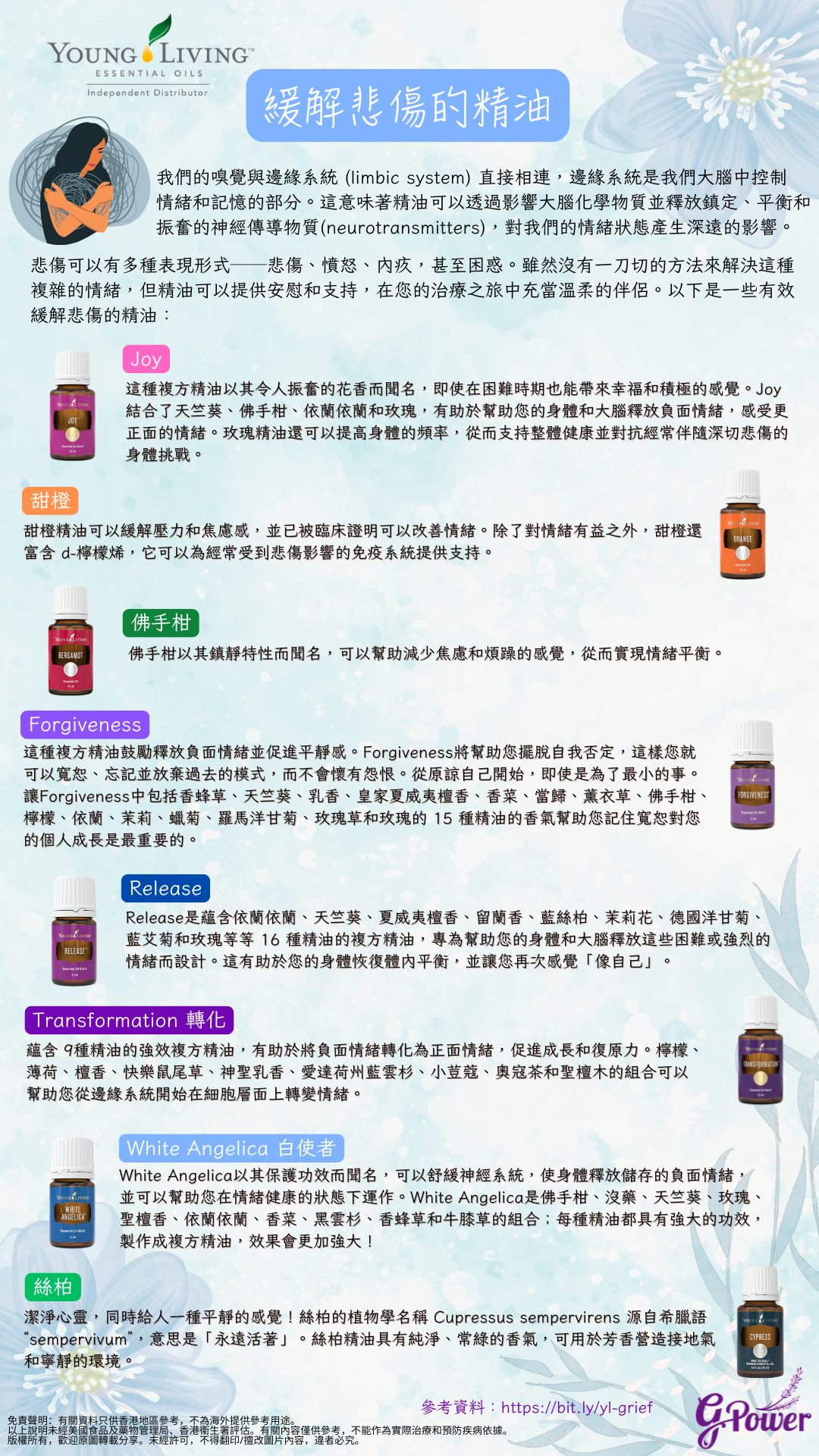如果您正感到悲傷,需要幫助處理您的情緒,並繼續前進,請每天使用 2-3 種精油。您並不孤單,事情也會向好的方向發展。