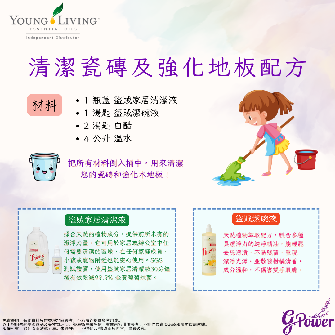 盜賊家居清潔液:揉合天然的植物成分,提供前所未有的潔淨力量。它可用於家居或辦公室中任何需要清潔的區域,在任何家庭成員、小孩或寵物附近也能安心使用。SGS測試證實,使用盜賊家居清潔液30分鐘後有效殺滅99.9% 金黃葡萄球菌。