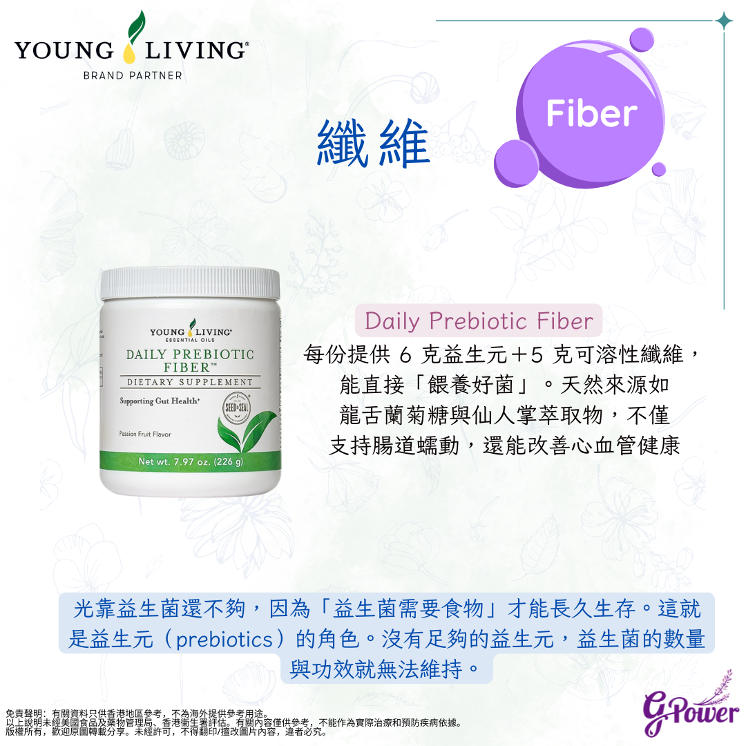 Daily Prebiotic Fiber:每份提供 6 克益生元+5 克可溶性纖維,能直接「餵養好菌」。天然來源如龍舌蘭菊糖與仙人掌萃取物,不僅支持腸道蠕動,還能改善心血管健康