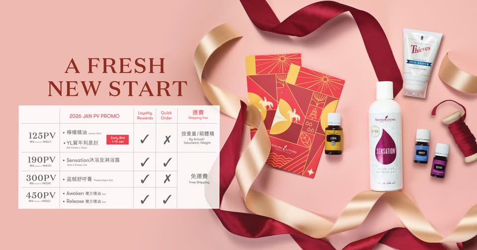 YL陪您展開嶄新篇章!1月PV獎賞精選多款精油同護理產品,助您調整身心狀態。125PV更有特別為馬年