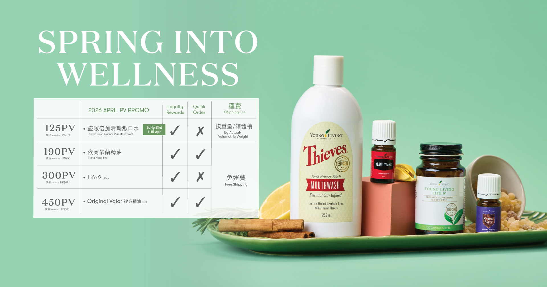 - 部份產品如送罄,Young Living將以相近價值的產品取替。