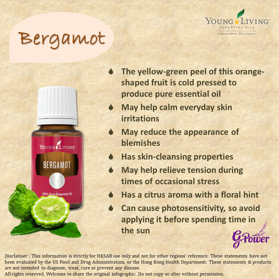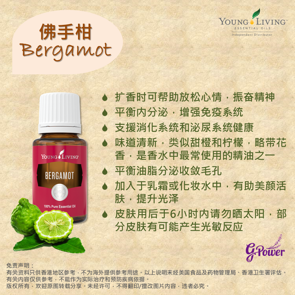 * 佛手柑會引致光敏性,使用後請避免讓肌膚曝曬於太陽下