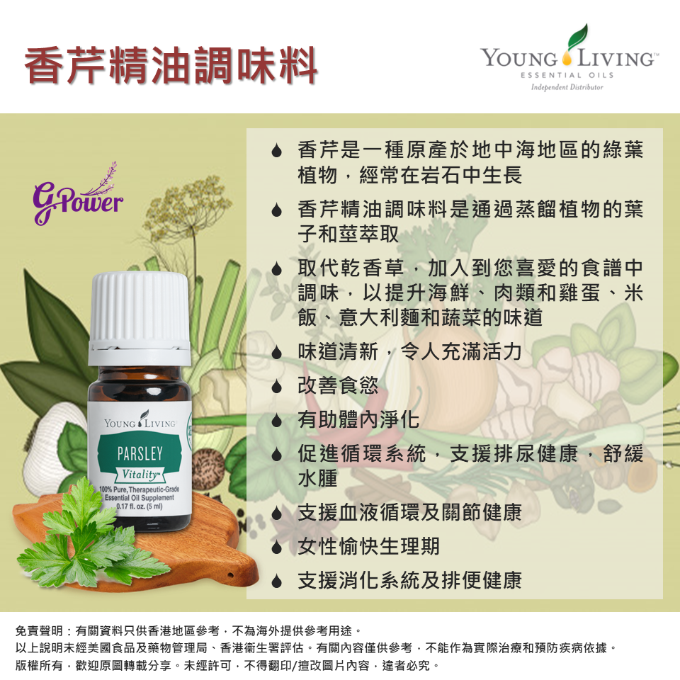 香芹是最常用的香草之一,清新的風味幾乎可以融入任何食譜。您可以使用1滴香芹精油調味料,為您喜愛的食譜增添清新及層次鮮明的風味。