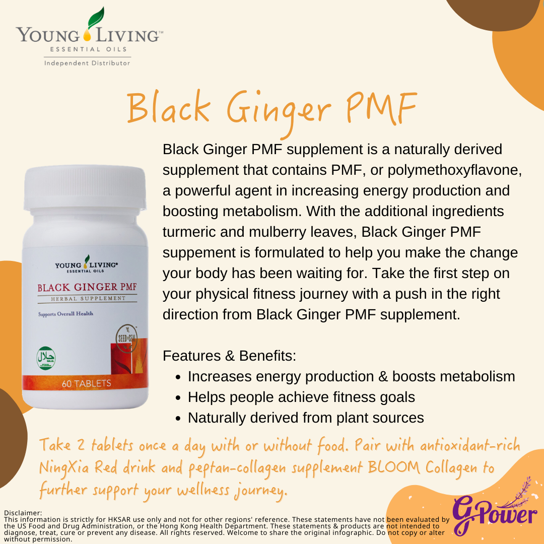 Black Ginger PMF是一種天然提取的補充劑,含有 PMF 聚甲氧基黃酮,是增加能量產生和促進新陳代謝的強效物質。Black Ginger PMF 補充劑含有薑黃和桑葉等額外成分,旨在幫助您實現身體一直期待的改變。Black Ginger PMF 補充劑帶領您朝正確方向邁出健身之旅的第一步!