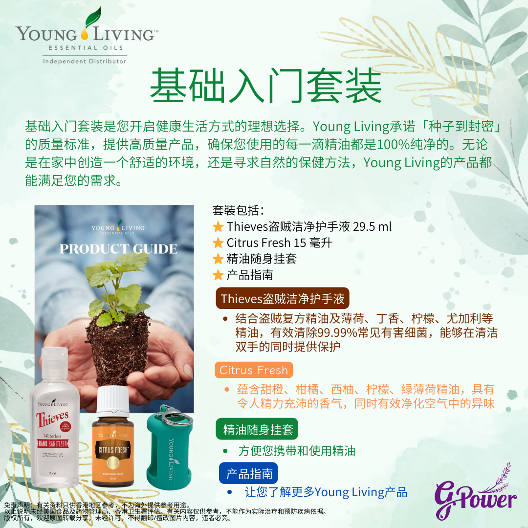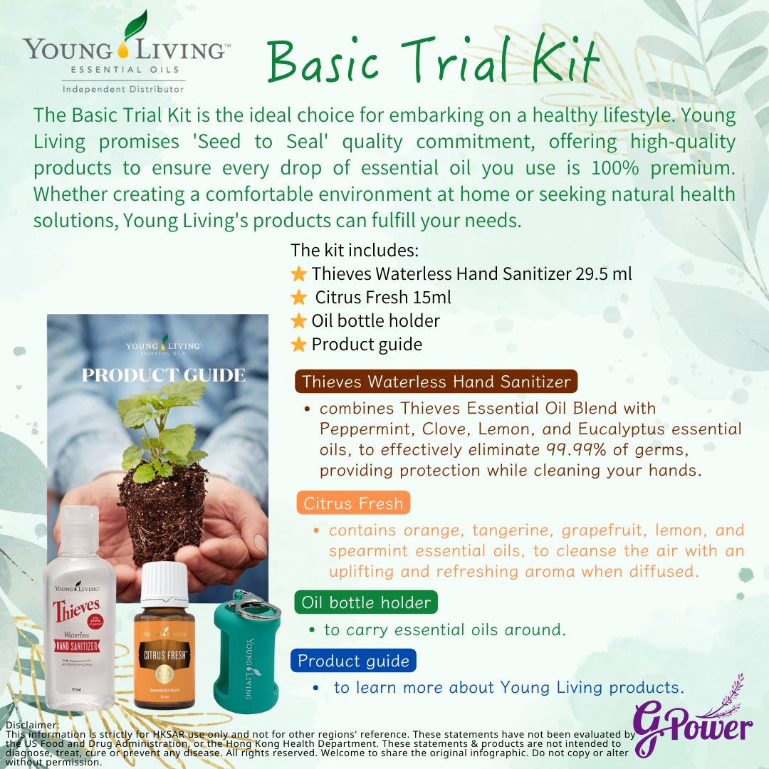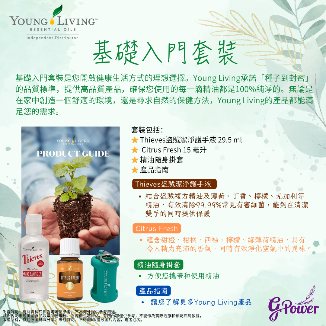 基礎入門套裝是您開啟健康生活方式的理想選擇。Young Living承諾「種子到封密」的品質標準,提供高品質產品,確保您使用的每一滴精油都是100%純淨的。無論是在家中創造一個舒適的環境,還是尋求自然的保健方法,Young Living的產品都能滿足您的需求。