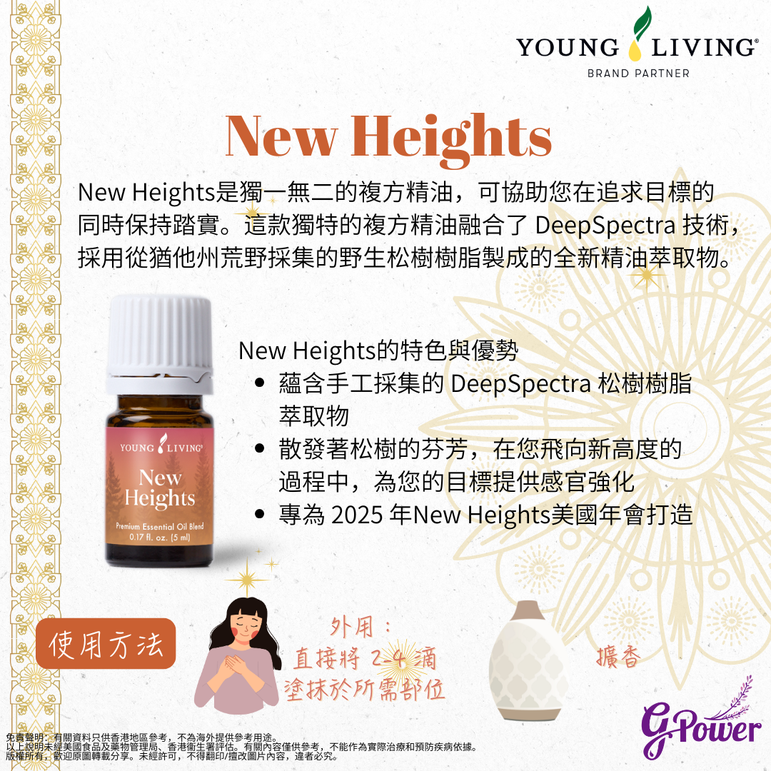 New Heights是獨一無二的複方精油,可協助您在追求目標的同時保持踏實。這款獨特的複方精油融合了 DeepSpectra 技術,採用從猶他州荒野採集的野生松樹樹脂製成的全新精油萃取物。