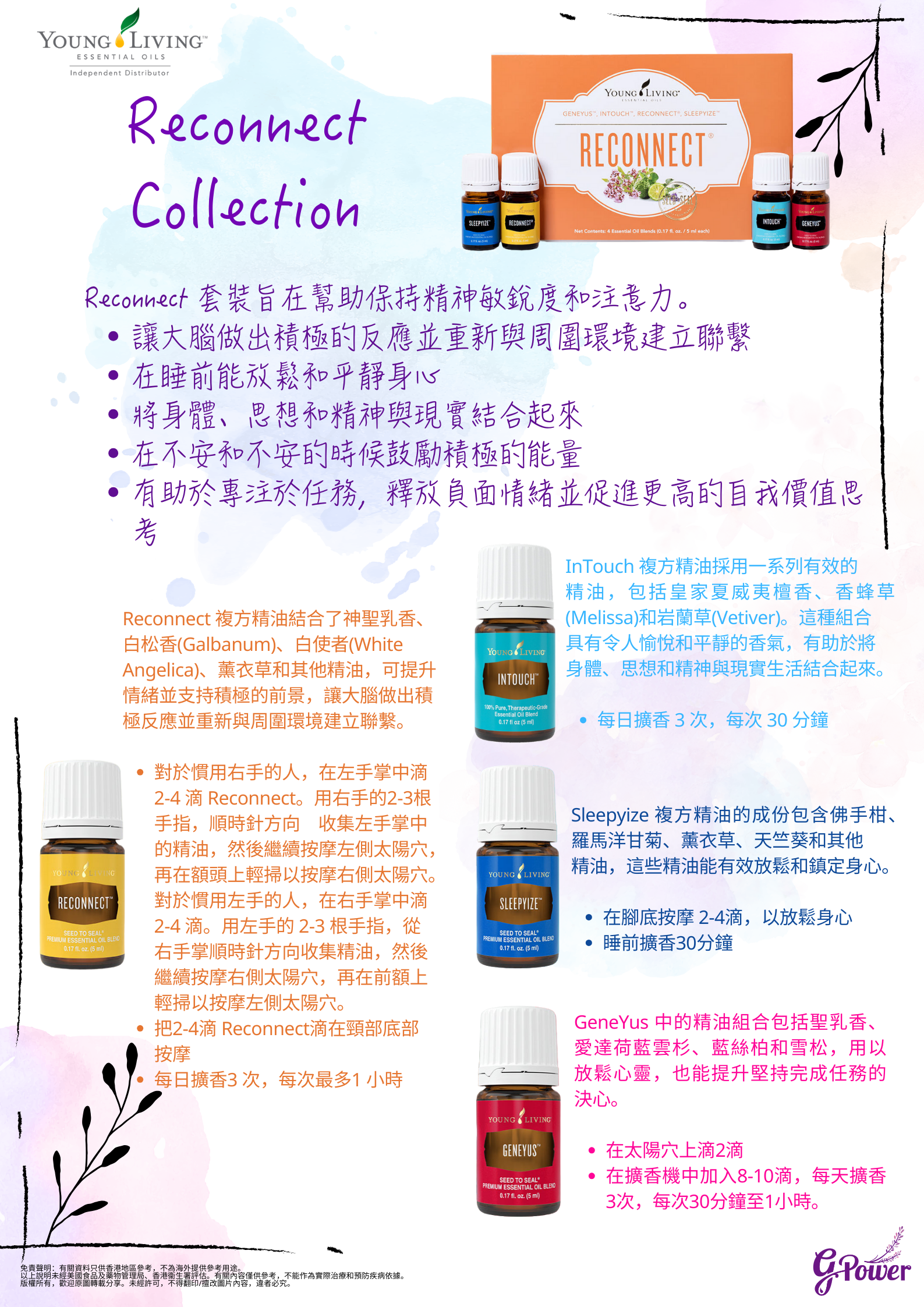 Reconnect 套裝包含 4 種新的複方精油: