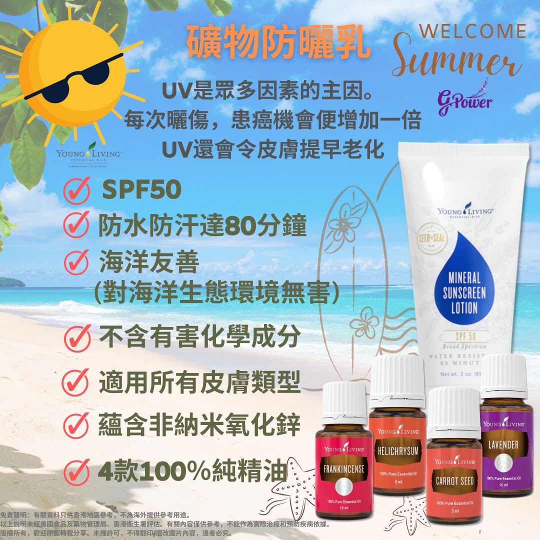 Young Living礦物防曬乳SPF是海洋友善防曬乳,可防水防汗達分鐘,防曬乳中亦加入了不同類型的精油,舒緩皮膚之外,還有淡淡清香;配方中亦不含有害化學成分,適用於所有皮膚類型,包括敏感肌。