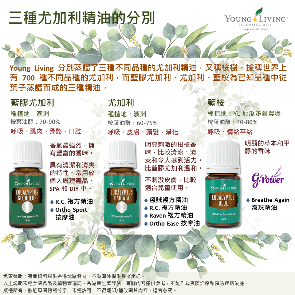 Young Living 分別蒸餾了三種不同品種的尤加利精油......