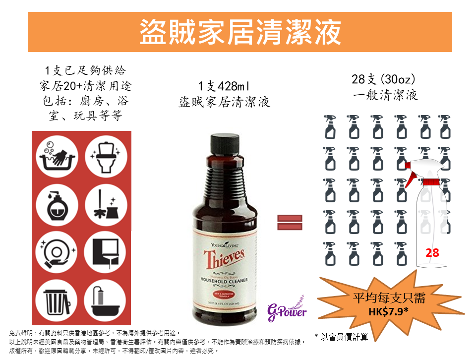 1支428ml 盜賊家居清潔液,經稀釋後相等於28支一般在市面上買到的清潔液 (30oz)。相信精明消費的您一定知道如何選擇 ......