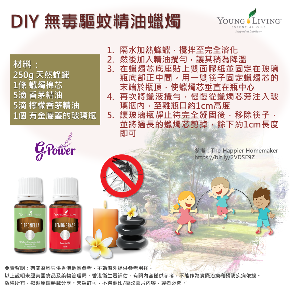 選擇以天然方法驅蚊蟲,效果比坊間的化學合成蚊怕水、蚊貼、電子蚊香、驅蟲劑絶不遜色,最重要是不用擔心長期使用會變成慢性中毒,為家居提供一個舒適而安全的環境 ......
