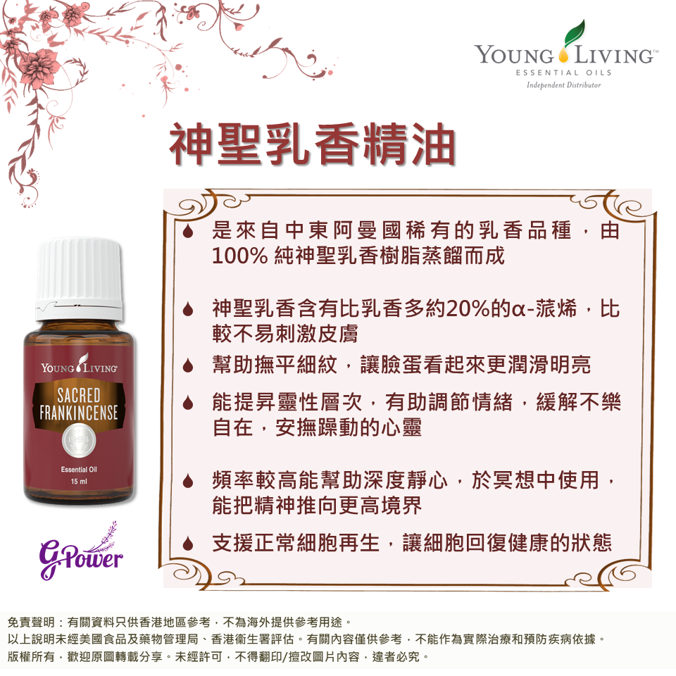 神聖乳香精油是由乳香樹的樹脂蒸餾而成的。 神聖乳香精油可在冥想中使用,把精神狀態推向另一境界。